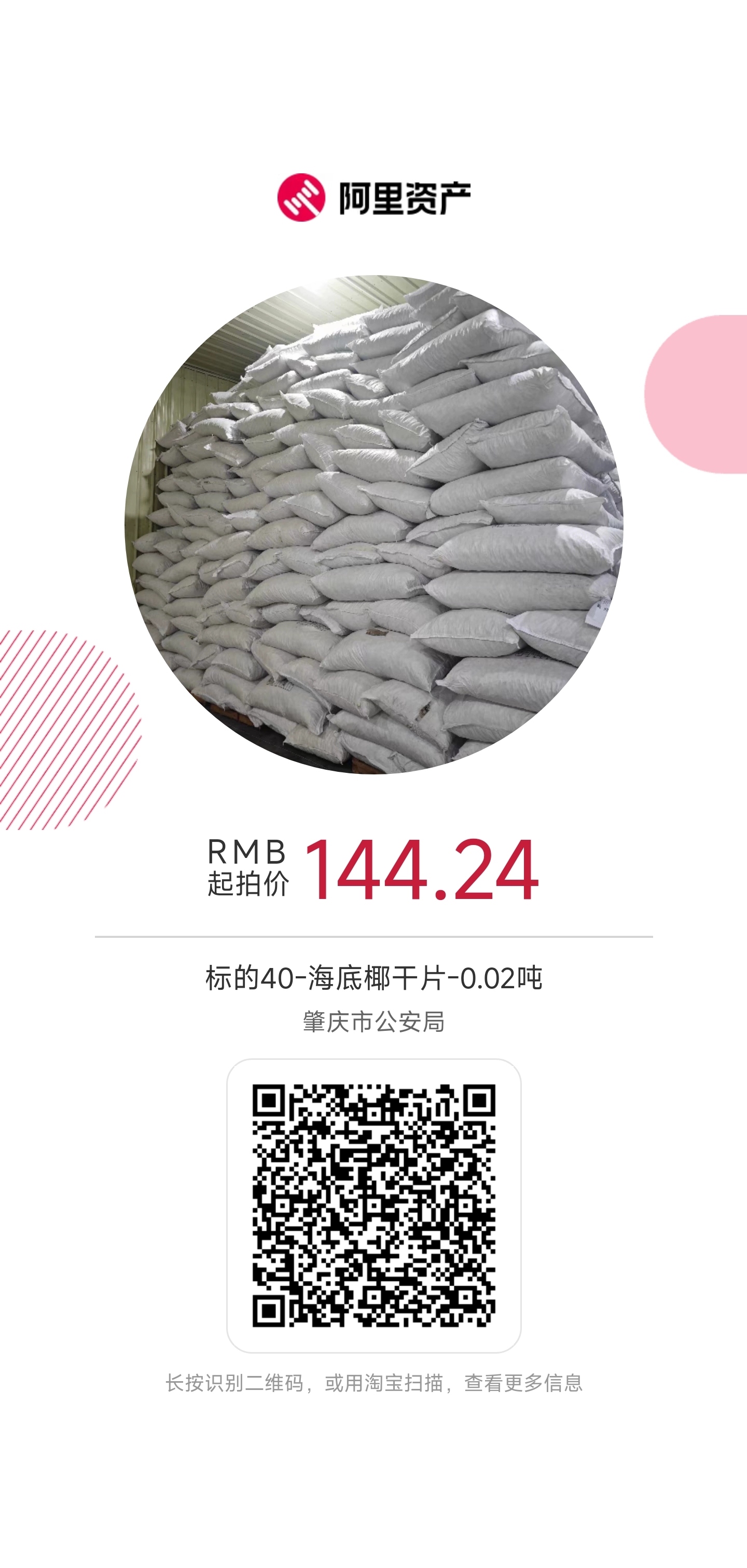 標的物:海底椰干片一批轉讓項目(分拆拍賣,共40個標的,具體詳見淘寶平臺網(wǎng)站公告的標的物清單)