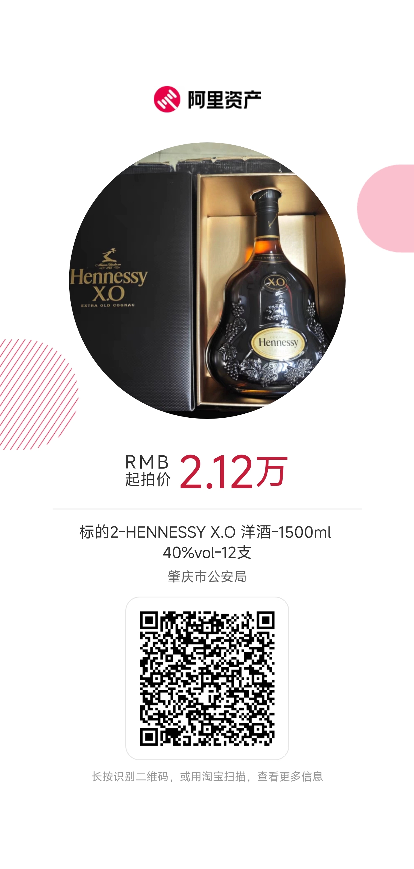 標(biāo)的物:軒尼詩(shī)洋酒一批轉(zhuǎn)讓項(xiàng)目(分拆拍賣,共2個(gè)標(biāo)的,具體詳見(jiàn)附件標(biāo)的物清單)。